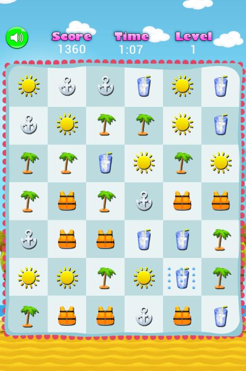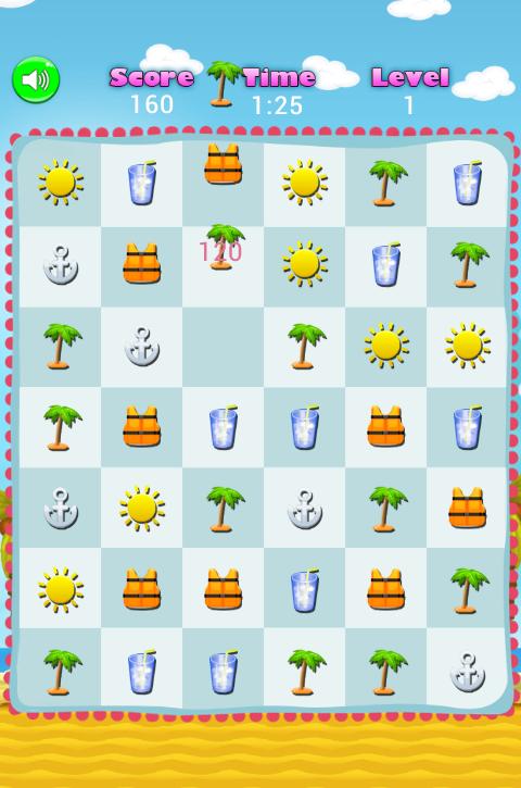 Alterne e combine 3 ou mais ícones de verão e faça com que eles explodissem.